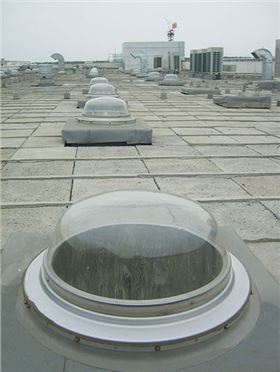 頂層安裝尤為適用于單層或頂層建筑。挺立的采光罩不管風(fēng)吹雨打、日曬雨淋,依舊“賣力”地采光,為建筑內(nèi)部提供源源不斷的太陽(yáng)光。猶如一個(gè)個(gè)勇士站列頂層,為建筑保駕護(hù)航,帶來(lái)光明。