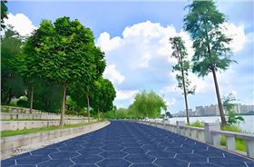 ▲環(huán)湖路光能寶盒發(fā)電地磚白天發(fā)電效果
