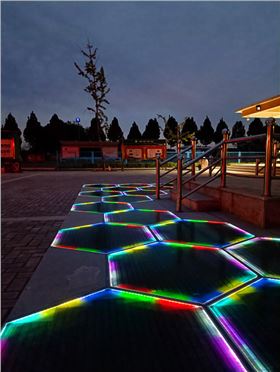 太陽(yáng)能發(fā)電地磚是一種在地面鋪設(shè)時(shí)能夠吸收太陽(yáng)光能并將其轉(zhuǎn)化為電能的瓷磚。與傳統(tǒng)的太陽(yáng)能發(fā)電系統(tǒng)相比,太陽(yáng)能發(fā)電地磚具有更大的靈活性和美觀性。學(xué)校利用這些特點(diǎn),在校園的操場(chǎng)地鋪設(shè)了太陽(yáng)能發(fā)電地磚,將太陽(yáng)能的利用最大化。