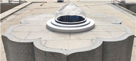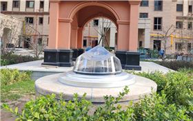 花型和圓形的蹲座與光導(dǎo)管采光系統(tǒng)鉆石型采光器相得益彰,極具藝術(shù)氣息,瞬間就拉升整個(gè)小區(qū)的綠色景觀品位!目前為止,筆者也是第一次見(jiàn)到大理石花型的墩座,高檔小區(qū)配置就是高規(guī)格!