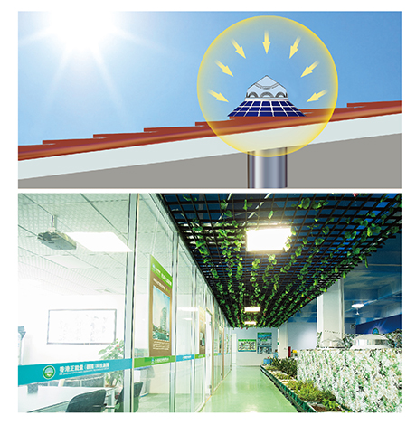 無電照明系統(tǒng)直接采集室外自然光、太陽光,能過濾90%以上的有害紫外線、紅外線,導(dǎo)入室內(nèi)的光線達(dá)到全光譜、無頻顯、無眩光,顯色指數(shù)達(dá)97%以上,使工作環(huán)境更加舒適,減少長(zhǎng)期處在燈光下引起的視覺疲勞,從而提高工作效率,創(chuàng)造更多社會(huì)效益。