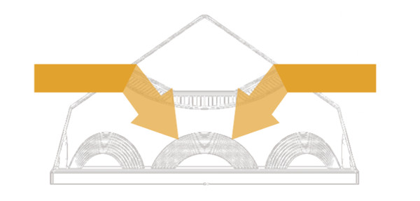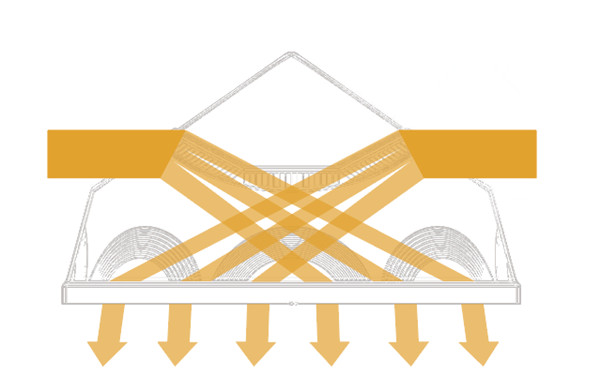 不僅使上午及下午陽(yáng)光轉(zhuǎn)向?qū)?,還對(duì)光線進(jìn)行聚焦,提高采光效率