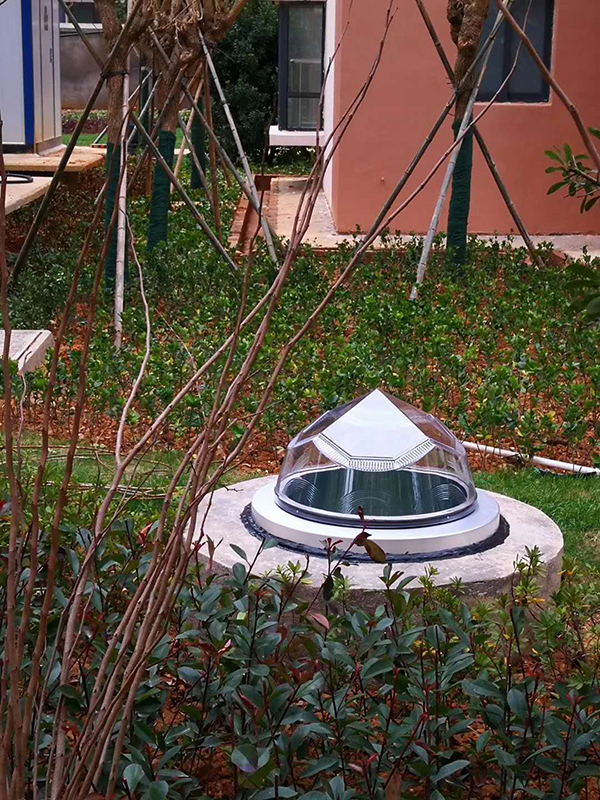 無電照明系統(tǒng)的加入成了小區(qū)景觀的一大亮點(diǎn),鉆石型采光罩與小區(qū)景觀相結(jié)合相得益彰,通過該系統(tǒng)將自然光導(dǎo)入地下停車場(chǎng),直接省去白天的電力消耗,實(shí)現(xiàn)節(jié)能減排與綠色照明!