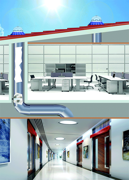 另外光導(dǎo)照明系統(tǒng)通過采光罩的折射、透射、聚焦等原理將光線高效的收集,經(jīng)由導(dǎo)光管內(nèi)表面高效反射處理,再引到室內(nèi),由漫射透鏡對陽光進行打散讓光線變的柔和、均勻照射到室內(nèi)各個角落。