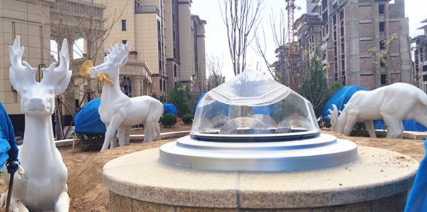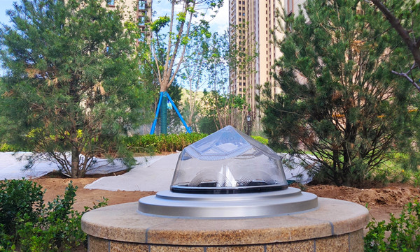 花型和圓形的蹲座與光導(dǎo)管采光系統(tǒng)鉆石型采光器相得益彰,極具藝術(shù)氣息,瞬間就拉升整個小區(qū)的綠色景觀品位!目前為止,筆者也是第一次見到大理石花型的墩座,高檔小區(qū)配置就是高規(guī)格!
