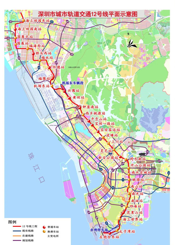 深圳地鐵12號(hào)線是深圳市軌道交通線網(wǎng)近期建設(shè)規(guī)劃中唯一一條南北穿越寶安老城區(qū)和南山區(qū)的線路。串聯(lián)起了南山中心區(qū)、寶安中心區(qū)、福永片區(qū)、大空港及會(huì)展片區(qū)的軌道交通骨干線路,是支撐深圳市西部發(fā)展軸帶建設(shè),支撐前海(蛇口)自貿(mào)區(qū)、空港新城地區(qū)城市發(fā)展,緩解南山中心區(qū)、寶安中心區(qū)交通擁堵的普速線路。線路全長(zhǎng)約 40.6 km,全線采用地下敷設(shè)方式;共設(shè)站 33 座(其中換乘站 18 座)。深圳地鐵12號(hào)線新安公園站位于新安二路與新圳路之間!